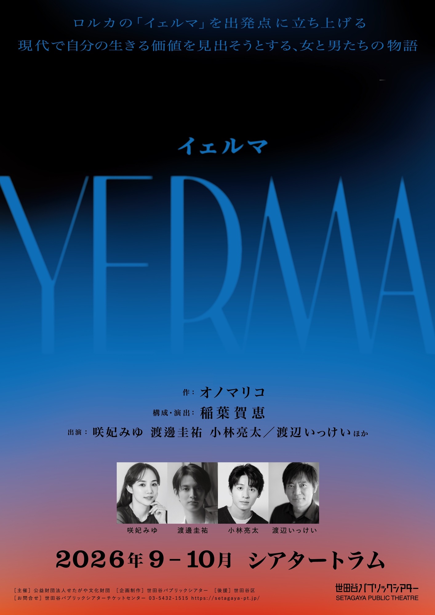 スペインの詩人・劇作家ロルカの傑作「イェルマ」を起点に、作:オノマリコ×演出:稲葉賀恵が放つ、生きる価値を見出そうとする女と男たちの物語。